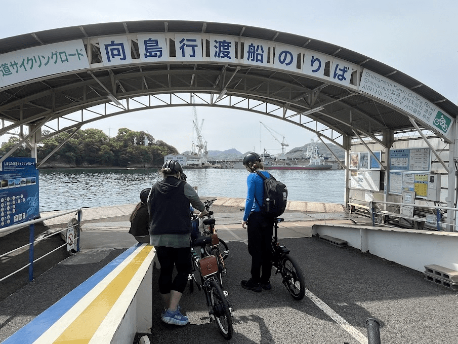 The rental shop was just around the corner from the train station and when we arrived it was decently busy, but we had no trouble getting our bikes (Giant Cross bikes). After gearing up we began the first leg of the ride which, interestingly, was actually a short ferry ride across the strait to the starting point on the first island, Mukaishima.