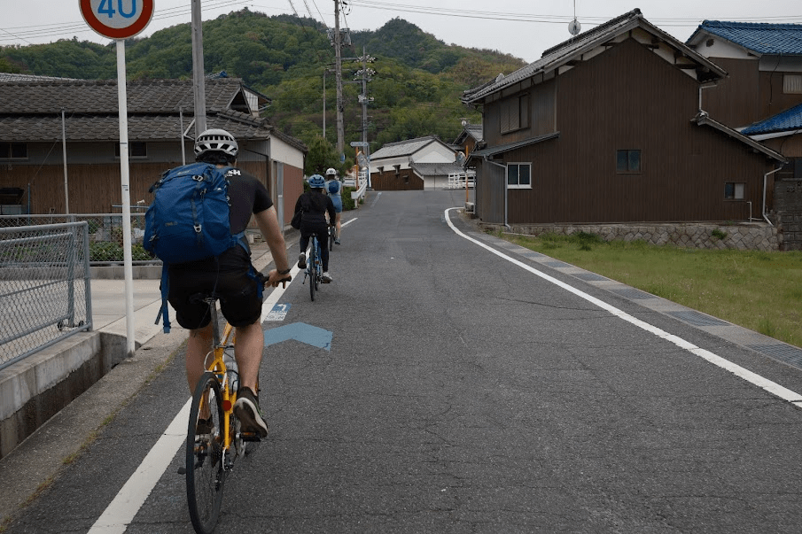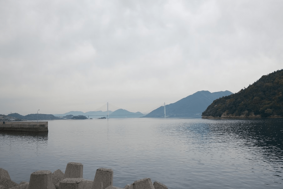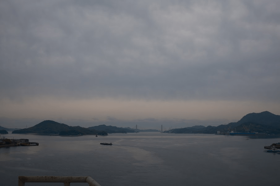 The name refers to both the highway that connects Hiroshima Prefecture and Ehime Prefecture across the Seto Inland Sea and the bike route itself. When the highway was being constructed, cycling infrastructure was designed into all the bridges, allowing the cycling route to traverse the sea over six major islands and a series of unique bridges. The region itself is located with in the Setonaikai National Park, the largest in Japan. The islands have a lot of agriculture as well and are especially known for their citrus groves, you’ll cycle past quite a few1. This is all to say: the scenery we saw on the ride was legitimately stunning, even in spite of our overcast day.