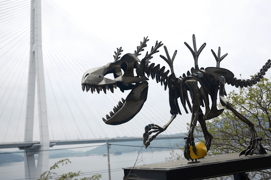 The third bridge of the day, Tatara Bridge, was the most visually striking one yet. We stopped for some photos at an observation deck near a cafe called Lemon Valley and a sculpture named Lemon Monster. Crossing this bridge marked roughly the midpoint of the ride , which was fortunate, as it looked like our overcast day was going to turn rainy earlier than anticipated.